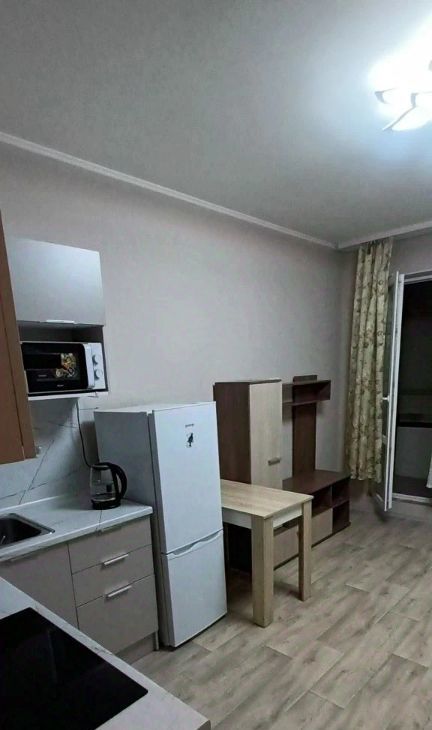 В комнате имеется мебель, которая позволит вам сразу начать комфортное проживание. Кухня оборудована всей необходимой техникой: холодильником, стиральной машиной и телевизором. Санузел совмещенный и оформлен в современном стиле, что добавляет дополнительный комфорт.