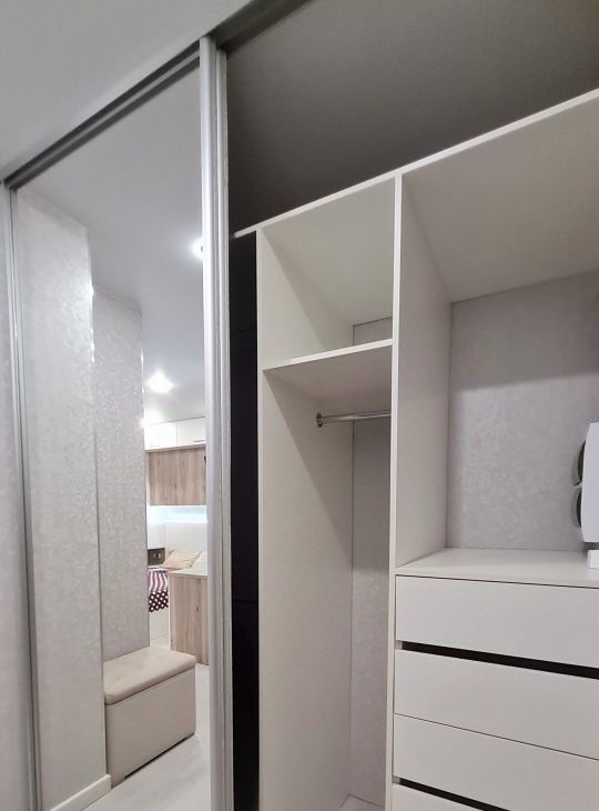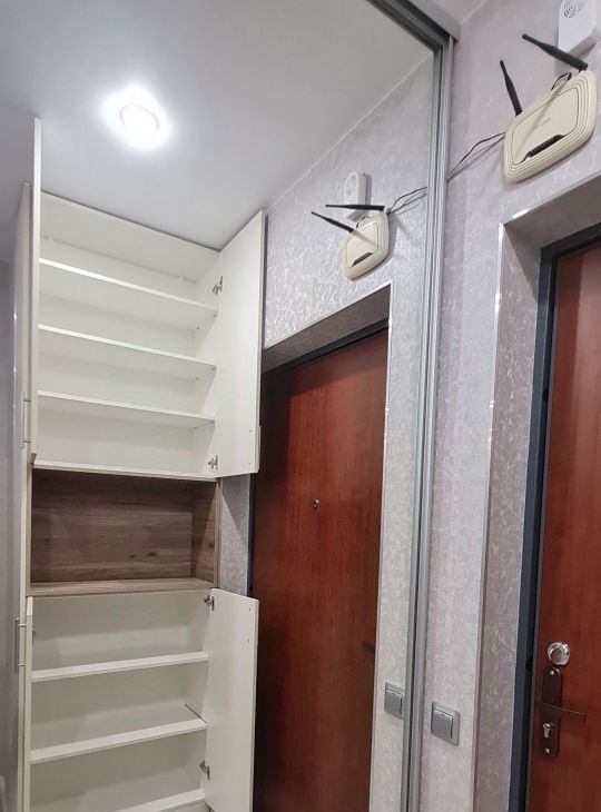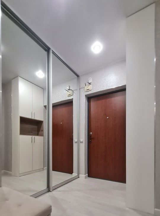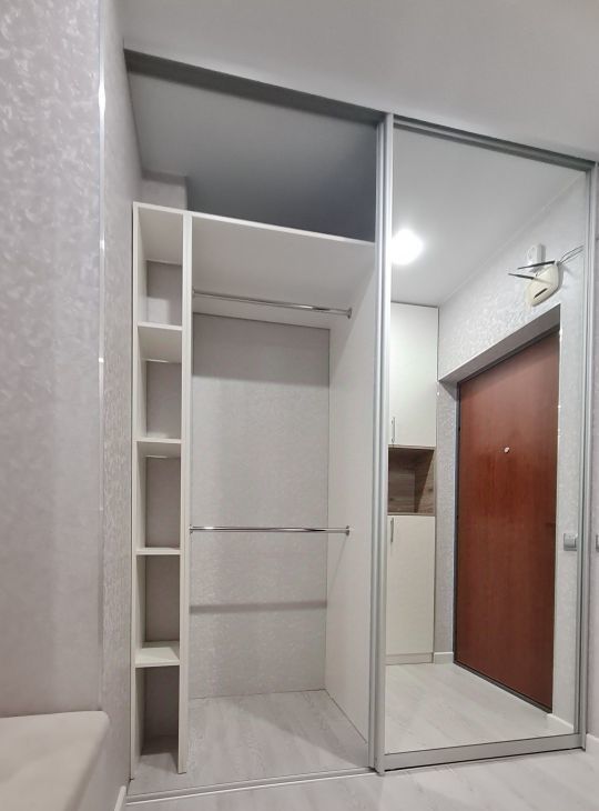 - Просторный коридор содержит глубокий шкаф купе и дополнительный шкаф для мелочей.