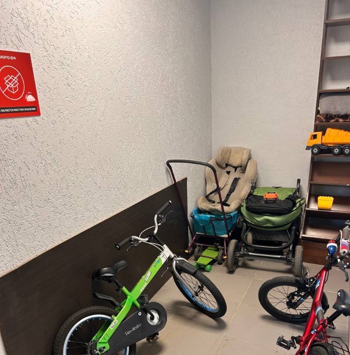 На лестнице каждого этажа место для хранения велосипедов и колясок