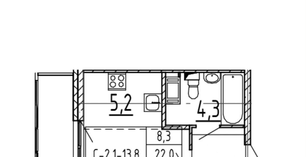 Студия Санкт-Петербург пос. Шушары, ул. Чудовская, 14к1 (22.0 м²)