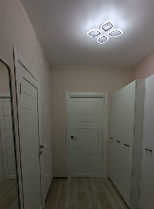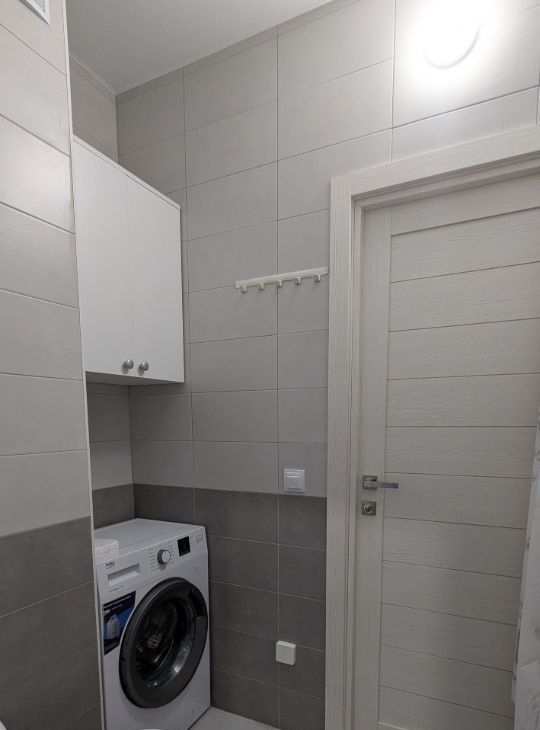 Есть все необходимое для комфортного проживания: раскладной двухспальный диван, шкаф с удобным хранением, гардеробная, кухонный гарнитур с подсветкой и вытяжкой, врезная варочная панель, большой холодильник, стиральная машина, телевизор.
