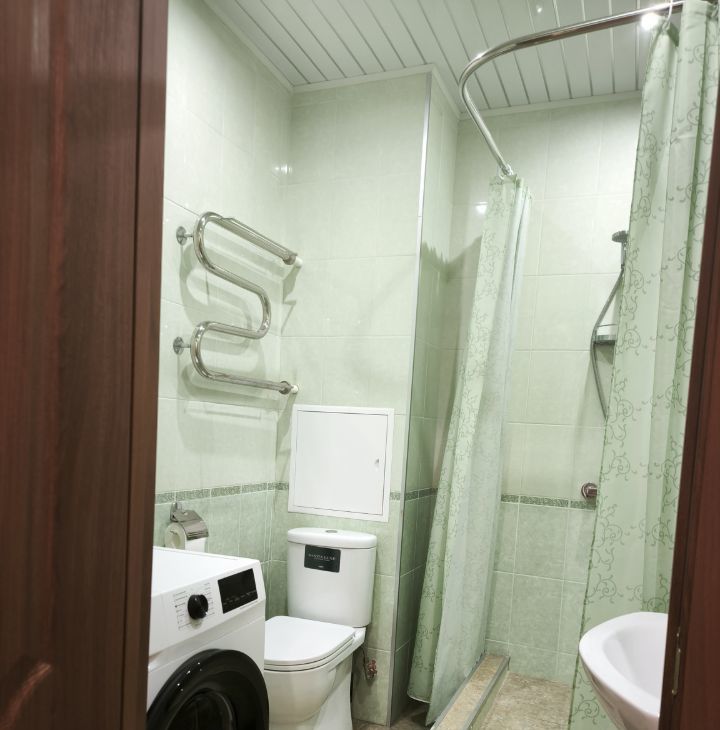В квартире сделан качественный евроремонт. Просторная студия полностью меблирована: есть мебель как в комнате, так и на кухне. Из техники в наличии холодильник и стиральная машина. Санузел совмещённый, с душевой кабиной. Для вашего удобства предусмотрена лоджия.