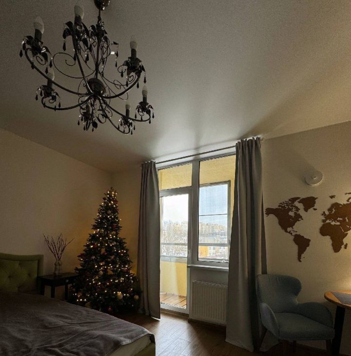 двуспальная кровать с абсолютно новым матрасом,шкаф-купе,стеллаж,обеденный стол и стулья-кресла,интернет, полноценная кухня, варочная панель ,духовка, микроволновка, посудомоечная машина,холодильник