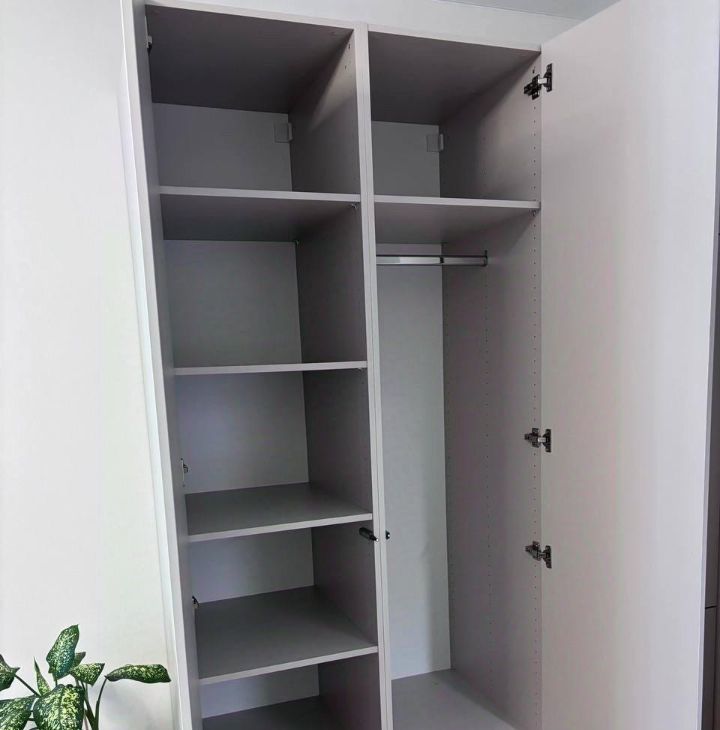 1. Продумана система хранения: большой шкаф в коридоре и встроенный в комнате (со штангой и полками);