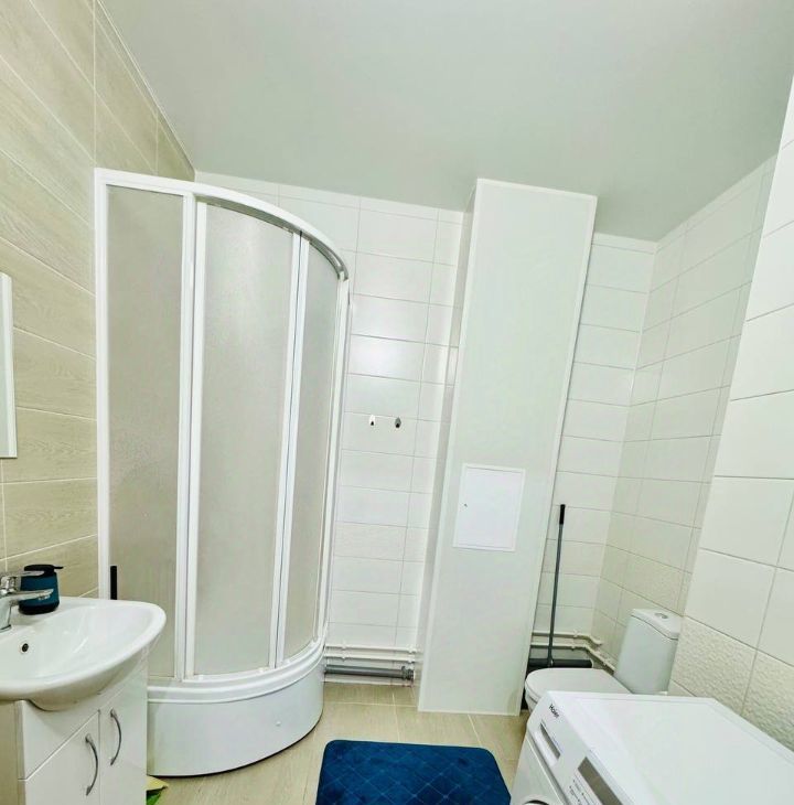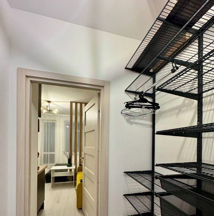 Есть все необходимое для проживания. Стиральная машина, кофемашина, холодильник, индукционная плита, вытяжка, тостер, чайник, фильтр для питьевой воды, сушилка для белья на балконе. Есть посуда и столовые приборы. В коридоре установлена система-трансформер для хранения вещей с возможностью регулировки высоты полок. Есть диван, кровать.