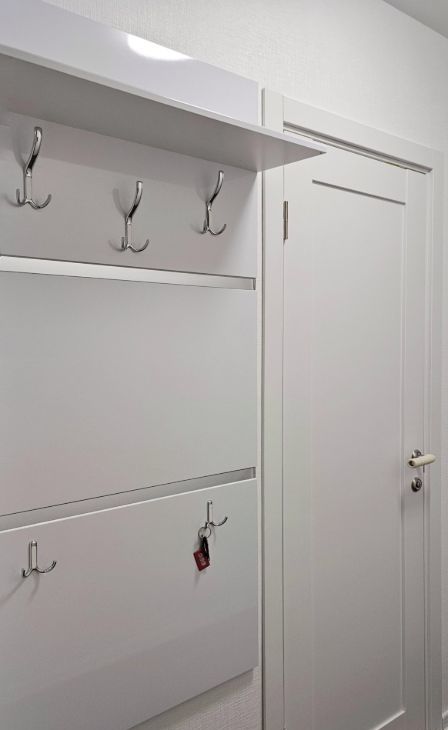 Прихожая оборудована настенными вешалками для верхней одежды