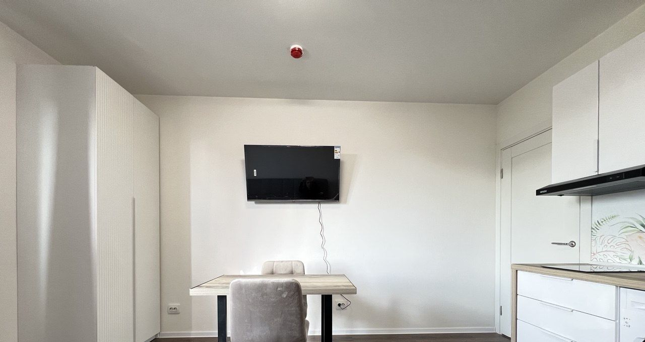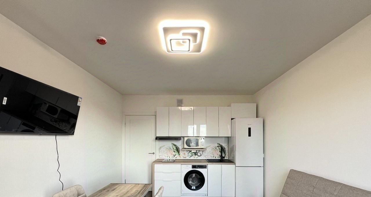 - имеется все необходимое для проживания: кухонный гарнитур, плита, вытяжка, холодильник, стиральная машина, телевизор, диван раскладной, стол обеденный, шкаф.