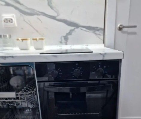Кухня: холодильник, индукционная варочная панель, духовой шкаф, посудомоечная машина, вытяжка, подсветка рабочей зоны.