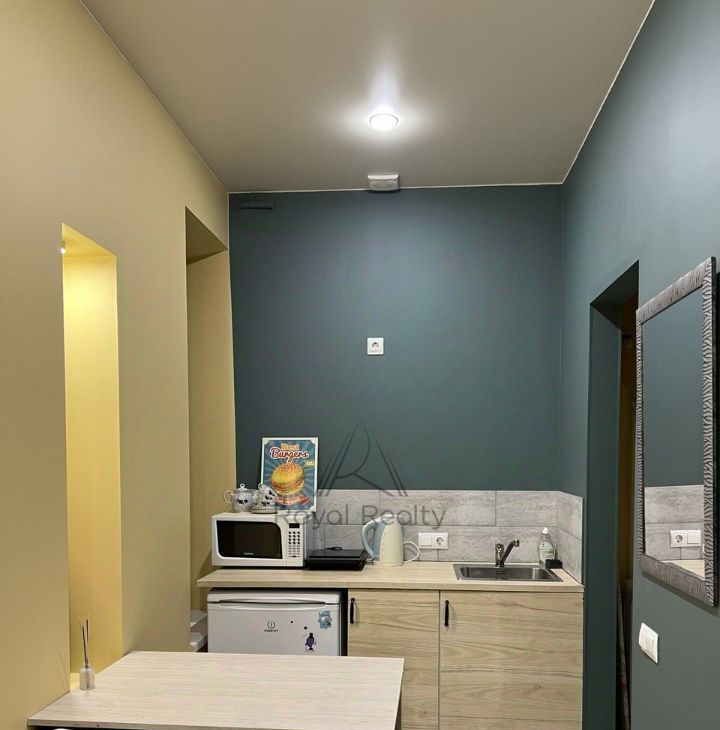 Квартира одна на площадке с дополнительной дверью в общий коридор, что обеспечивает тишину и порядок. Студия оснащена новой техникой: варочная поверхность, стиральная машина, ТV, микроволновая печь, бойлер. Вся сантехника абсолютно новая.