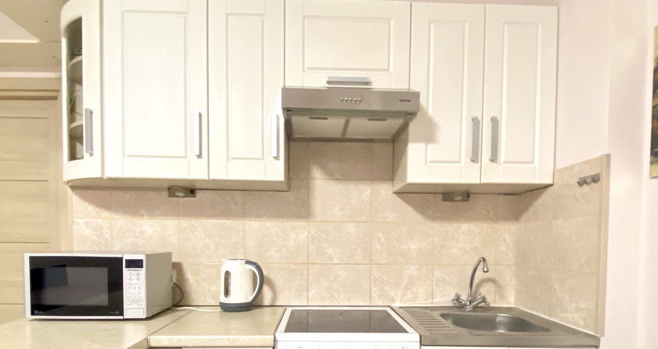 - Современная бытовая техника : полноценная плита с духовкой, стиральная машина, микроволновка, 2х камерный холодильник;