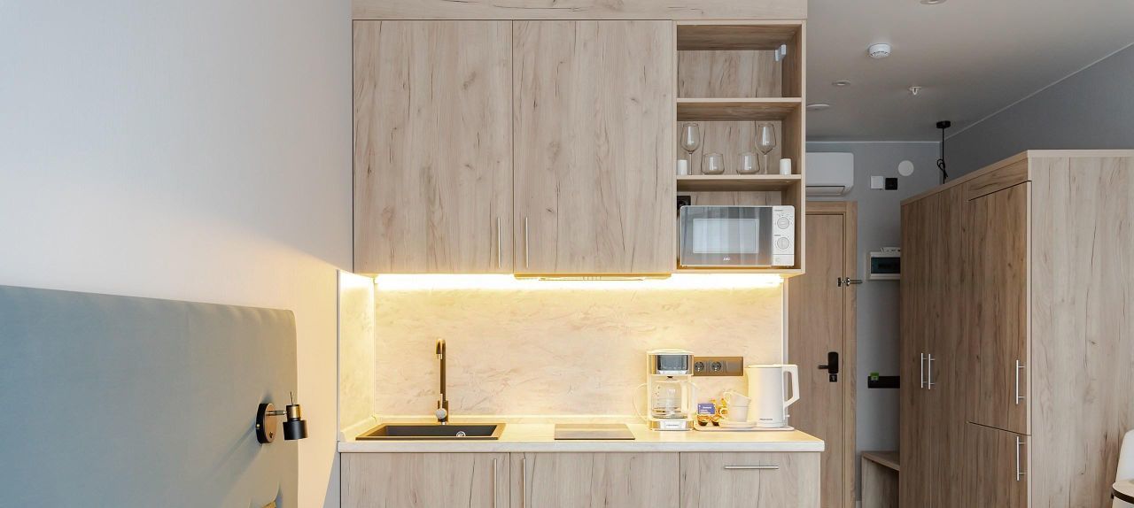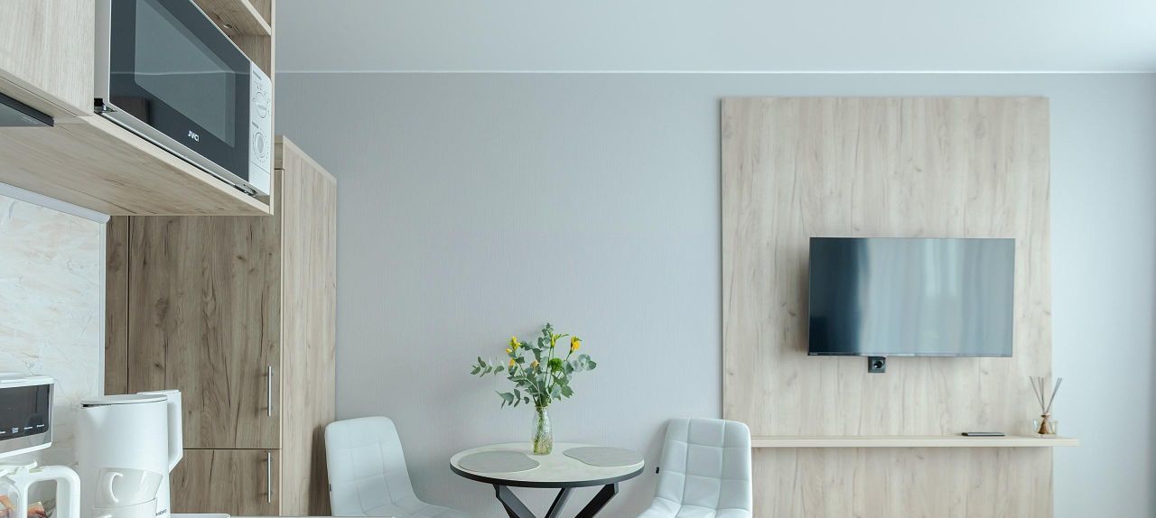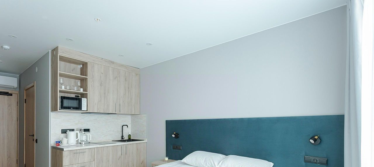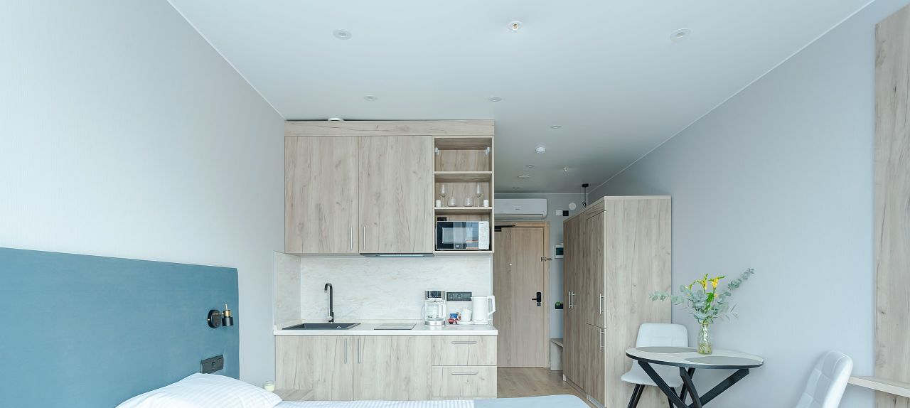 Район, в котором расположены апартаменты, с развитой инфраструктурой, в пешей доступности магазина Окей, перекрёсток, кофейни, торговый центр, аптеки, салоны красоты.