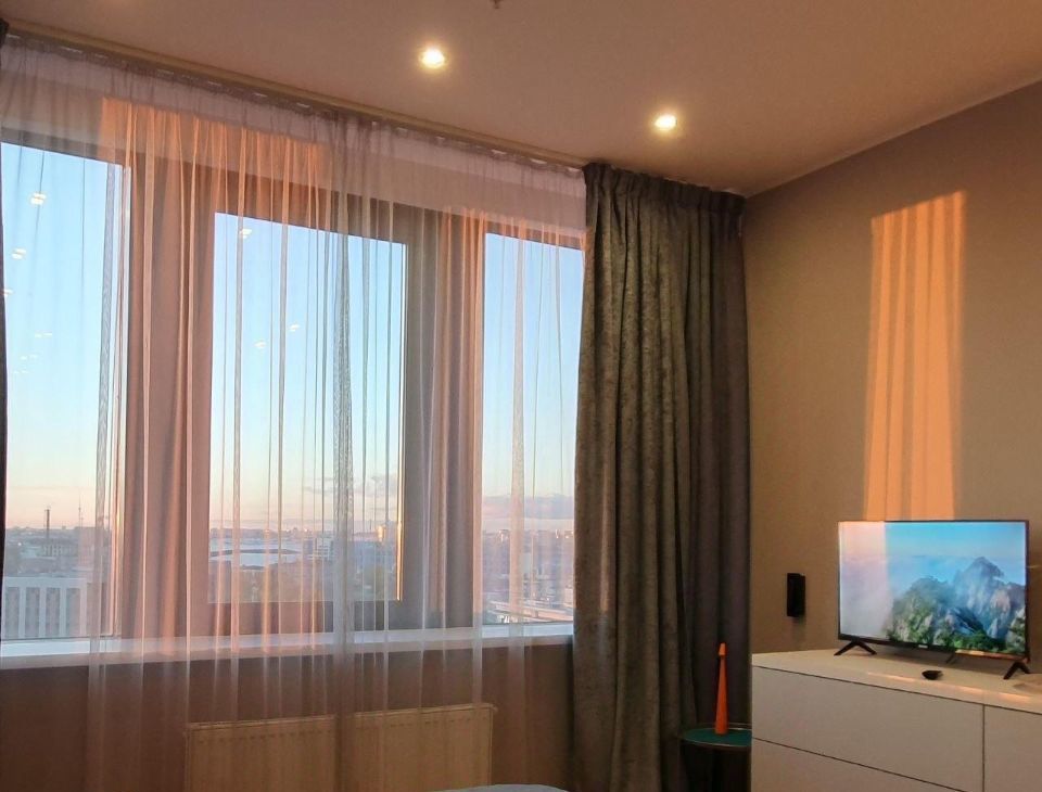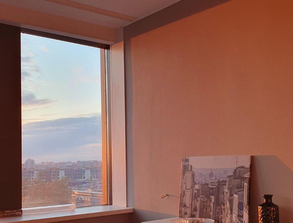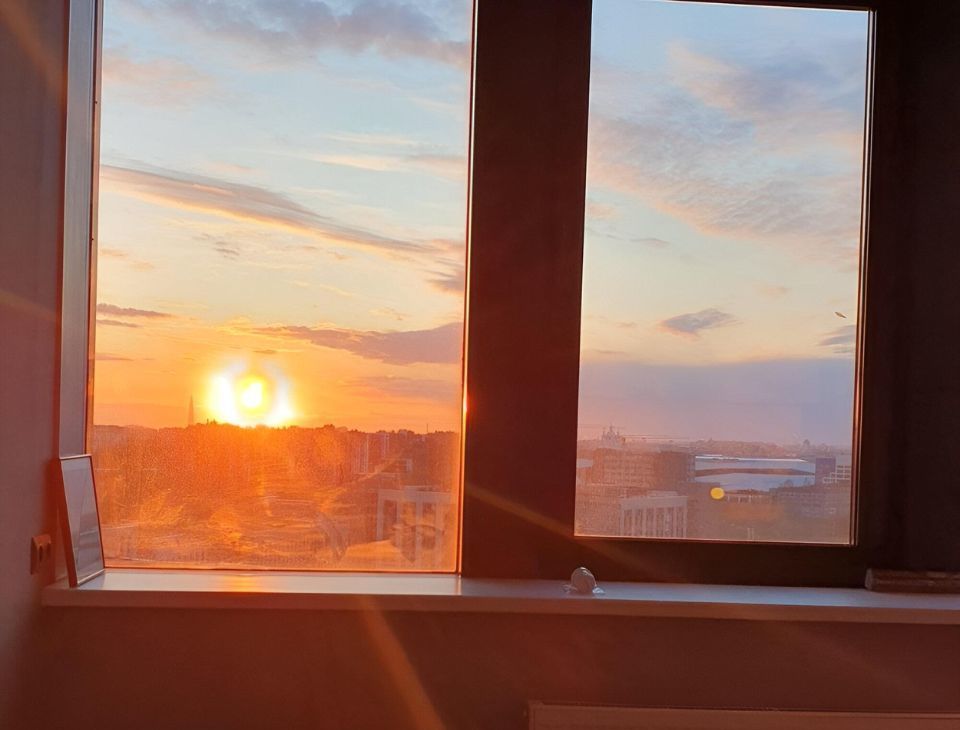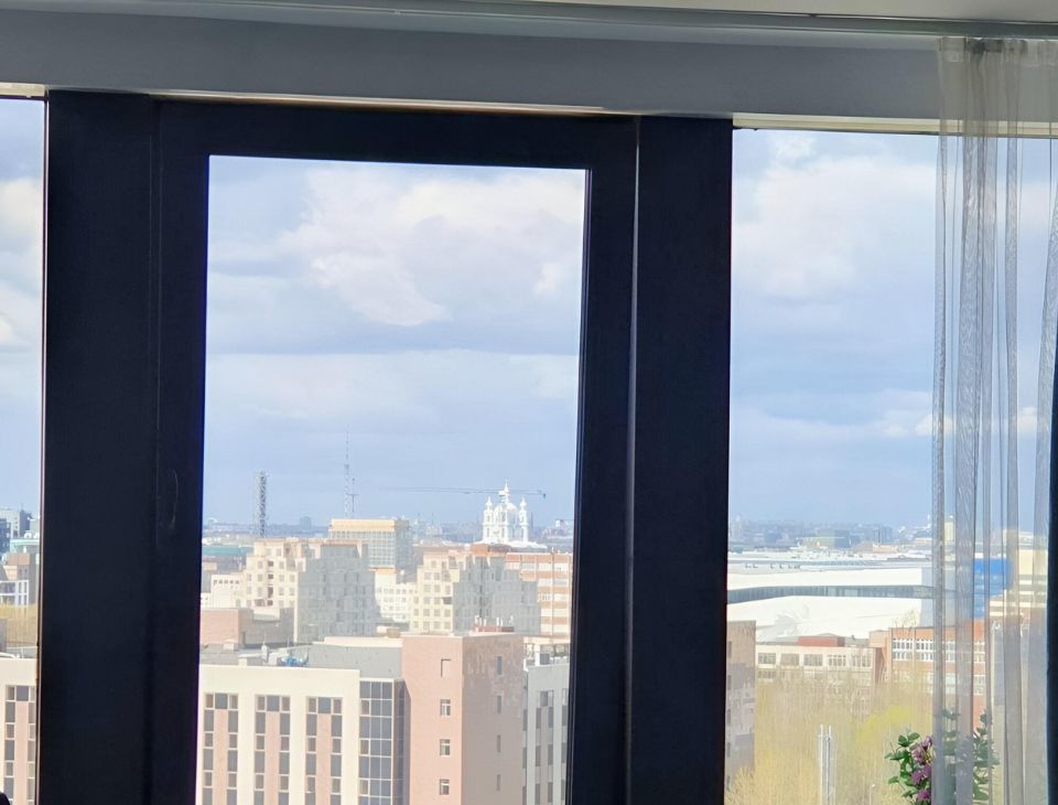 Из больших окон открывается потрясающий вид на Смольный Собор, Лахта Центр и другие достопримечательности Петербурга. Закатная сторона - студия будет заливаться красивым солнечным светом.