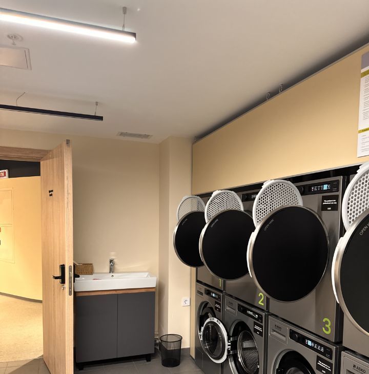На втором этаже комплекса есть прачечная с профессиональными стиральными и сушильными машинами.
