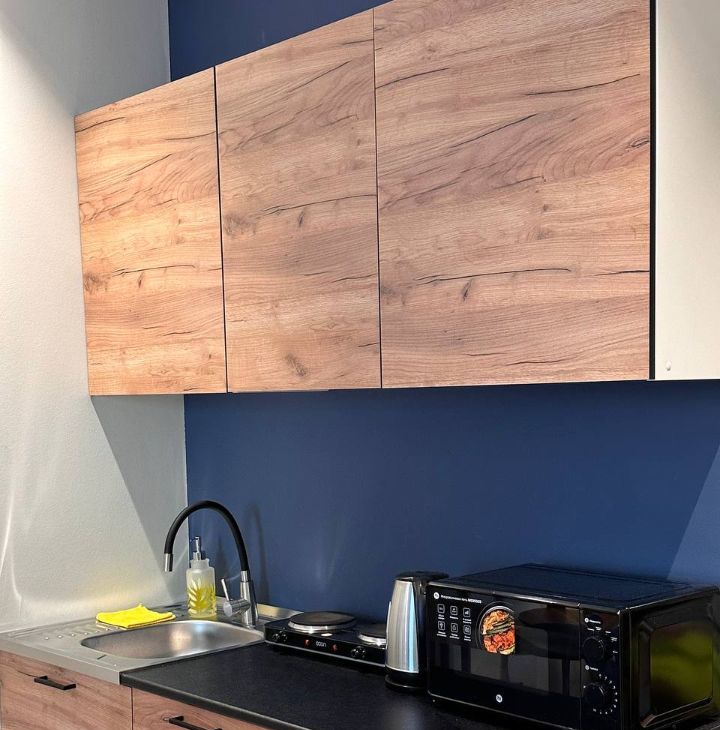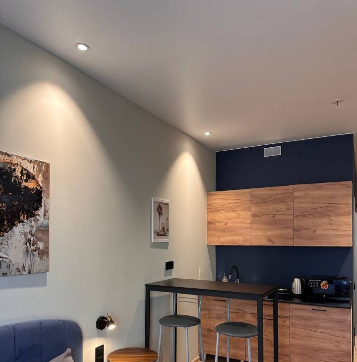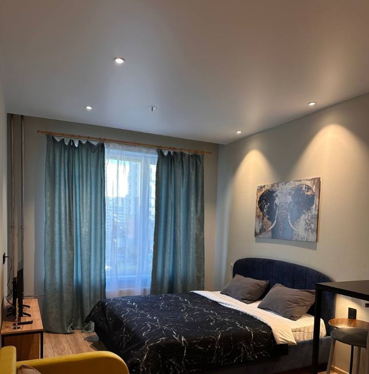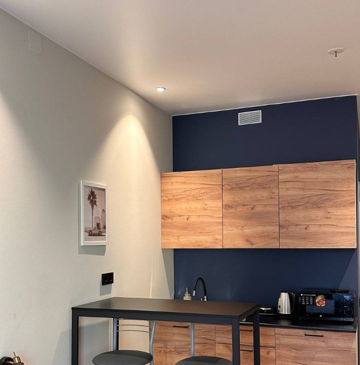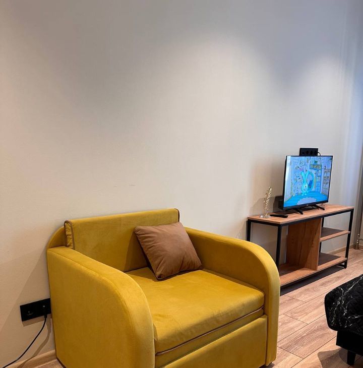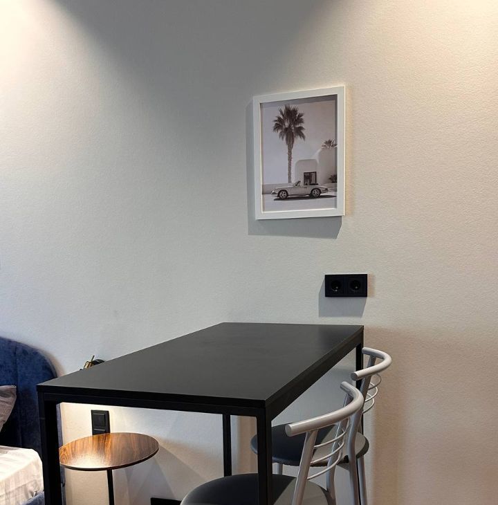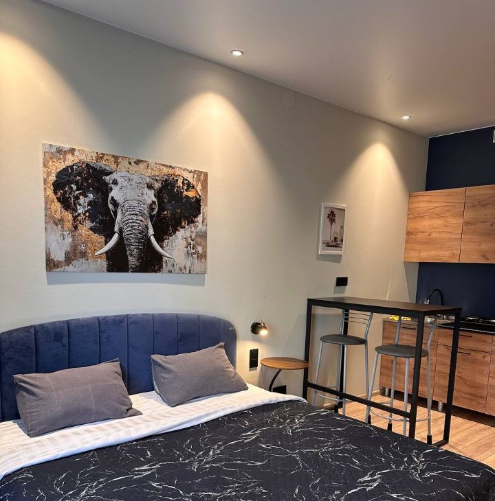 Студия выполнена в современном стиле с качественным евроремонтом. В комнате и на кухне есть вся необходимая мебель для комфортного проживания.