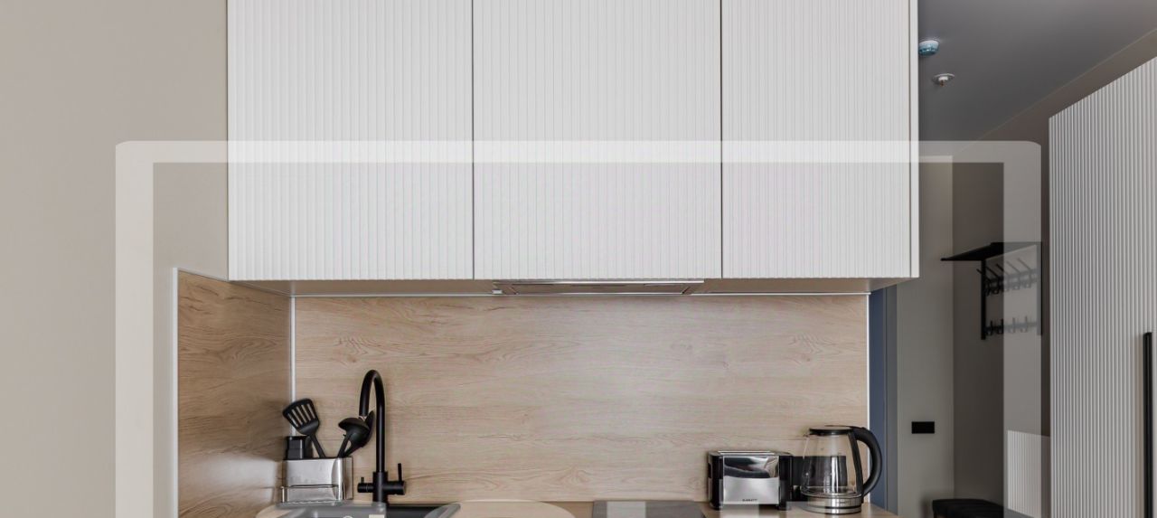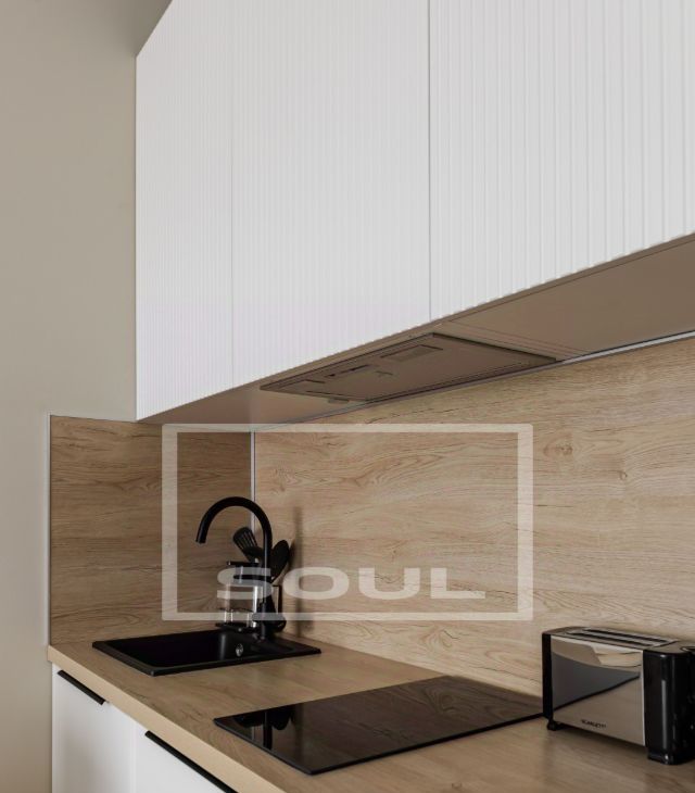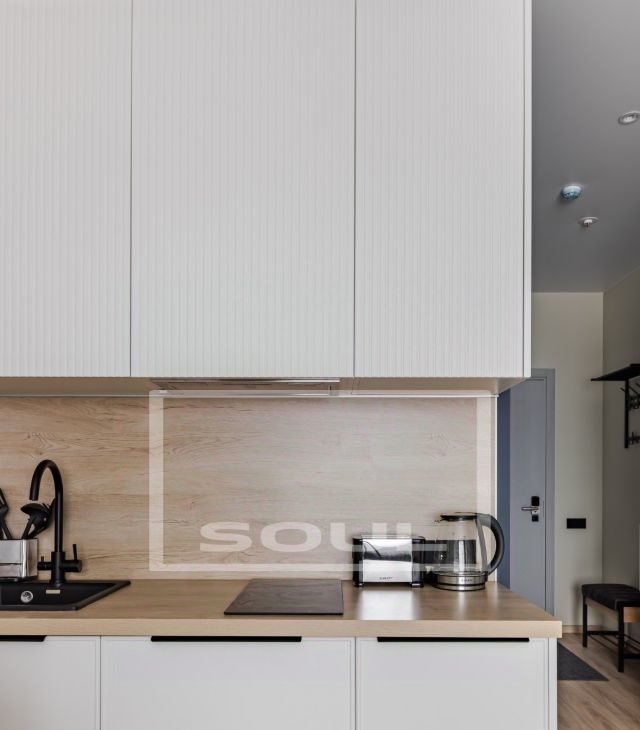 - удобная зона кухни со всей необходимой техникой: холодильник, варочная поверхность, микроволновая печь, посудомоечная машина, электрический чайник и тостер;
