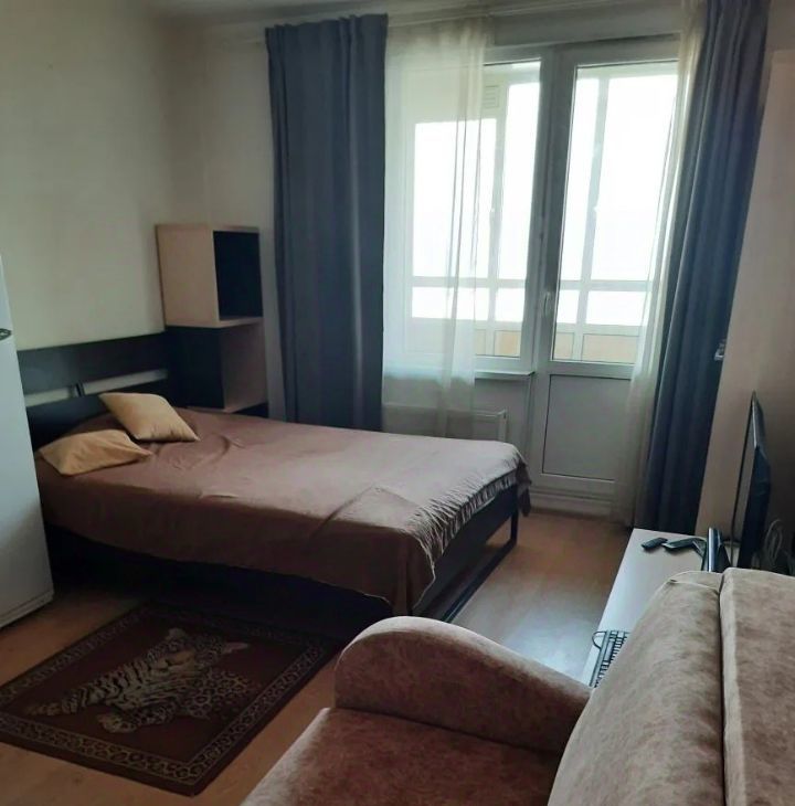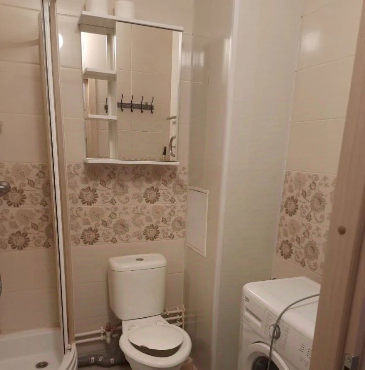 В квартире есть всё необходимое для комфортного проживания: косметический ремонт, мебель на кухне и в комнате, а также необходимая техника — холодильник, телевизор и стиральная машина. Планировка предусматривает совмещённый санузел с душевой кабиной, а окна выходят во двор, что обеспечивает тишину и покой. Также имеется лоджия, где можно организовать дополнительное место для отдыха или хранения вещей.