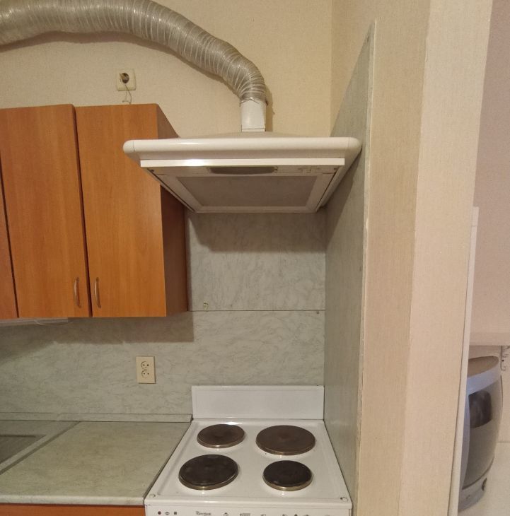 - плита электрическая с духовым шкафом, холодильник небольшой, мойка;