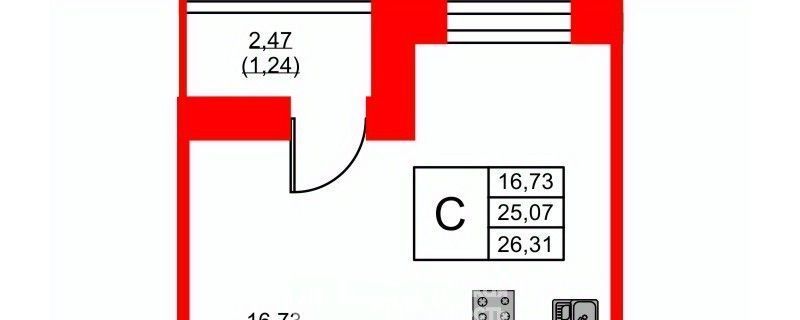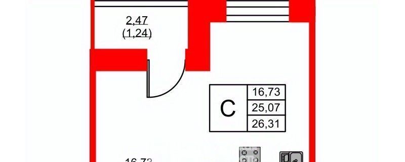 Студия Санкт-Петербург просп. Энгельса, 29 (25.3 м²)