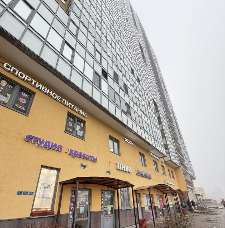 ЖК "Граффити" Сдается просторная квартира-студия 27 кв метров. Сан узел совмещенный: ванная. При входе большой зеркальный шкаф. Также есть большая застекленная лоджия. До метро Комендантский и Пионерская ходит общественный транспорт. Остановка рядом с домом.