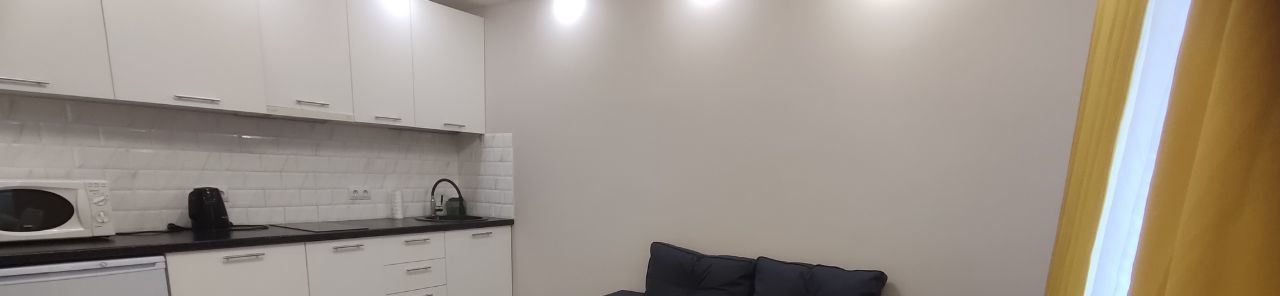 Сдаётся уютная квартира-студия от собственника, с качественным ремонтом, бытовой техникой, готовая к проживанию. Стиральная машина, телевизор, плита, микроволновка, роутер, кухонная вытяжка, тёплый пол в санузле. Удобная прихожая с просторными шкафами для одежды и вещей. Дополнительные удобства обсудим по необходимости. Два лифта, грузовой и пассажирский. В пешей доступности большая Лента, Леруа Мерлен. Сдаётся только с проживанием не менее полугода! Без животных. Предпочтение отдадим молодой паре или девушке. Цена за месяц-27000+КУ. Залог 100%(можно разбить на два месяца).