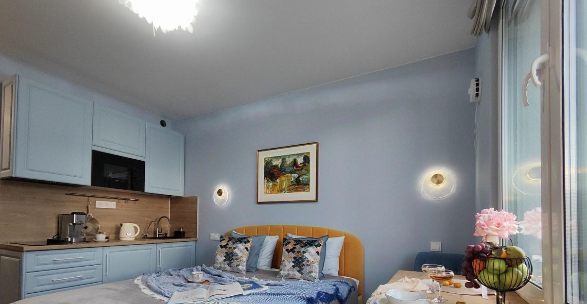 Студия "Сказки северян" с видом на залив в атмосферном месте - Васильевский остров, новые территории в окружении большой воды. Популярное место с островным духом, новые стильные дома с насыщенной инфраструктурой от магазинов до кафе, дворы оснащены местами для отдыха и детского досуга.
