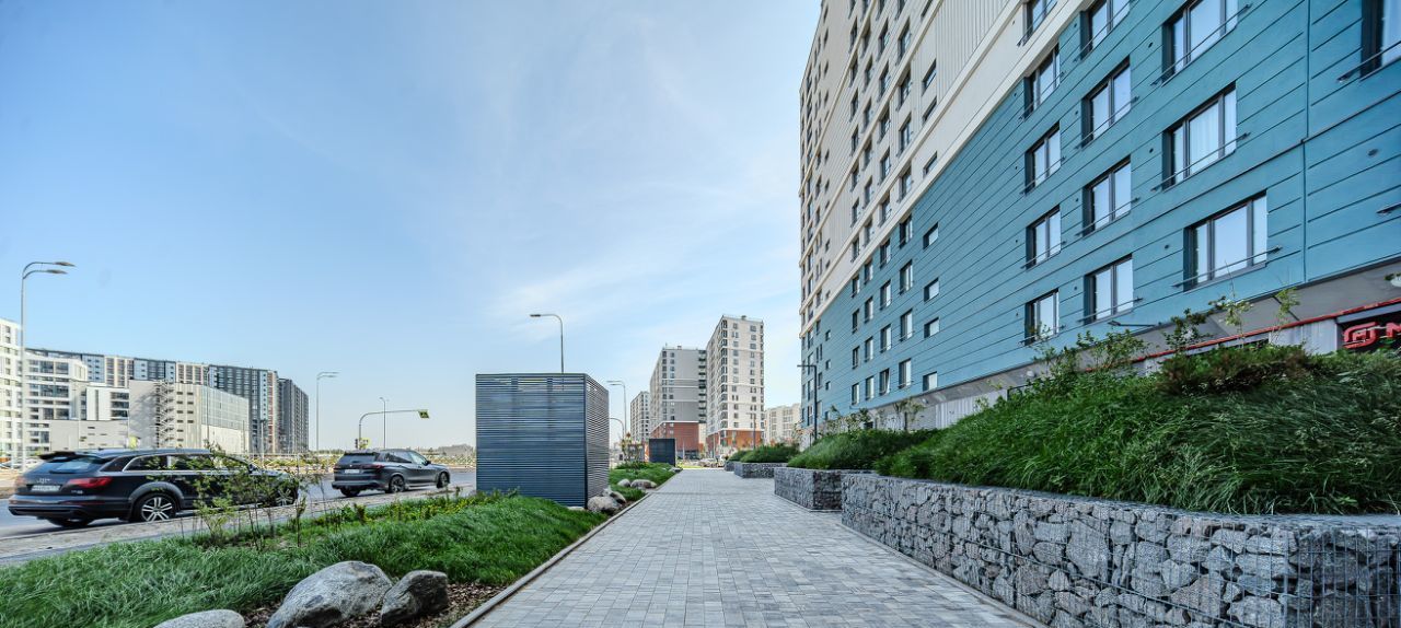 Жилой комплекс бизнес класса, новый . Однородный социальный состав, безопасность, комфорт, видеонаблюдение . В доме имеется универсам Магнит, пункты выдачи , очень красивая и благоустроенная территория .