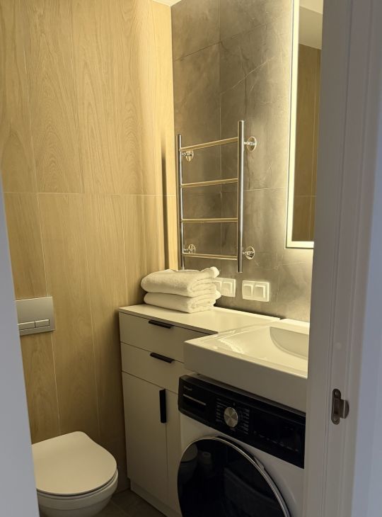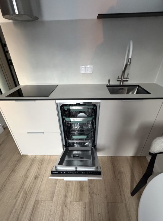 Комфорт и современные удобства: Посудомоечная машина; холодильник и морозильная камера total no frost , с самым низким уровнем шума ( бесшумный); духовка и микроволновка 2 в1; стиральная машинка с функцией сушки; индукционная варочная поверхность на 3 комфорки с функцией слайд.