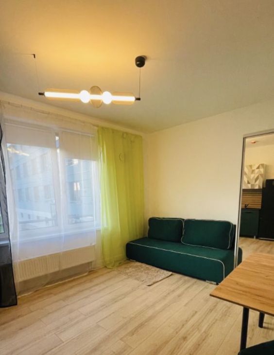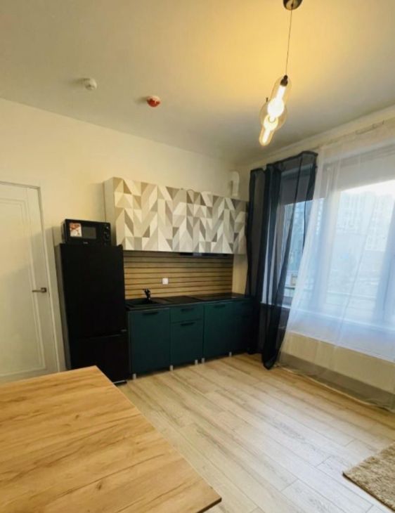 Студия выполнена в современном стиле с евроремонтом. Все необходимое для комфортной жизни уже есть: полностью оборудованная кухня с мебелью и техникой, включая холодильник и стиральную машину. В комнате также есть мебель. В ванной комнате установлена душевая кабина, что экономит пространство и позволяет быстро освежиться.