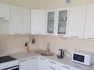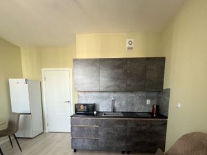 Квартира сдается первый раз. Вся мебель и бытая техника абсолютно новые. Из техники: варочная панель на 2 конфорки, холодильник, микроволновая печь, стиральная машинка