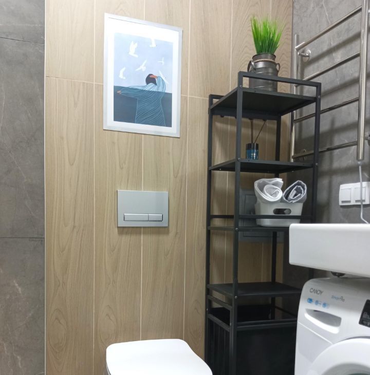 Вся необходимая техника (стиральная машина с сушкой, холодильник, индукционная варочная панель, микроволновая печь с конвекцией и грилем)