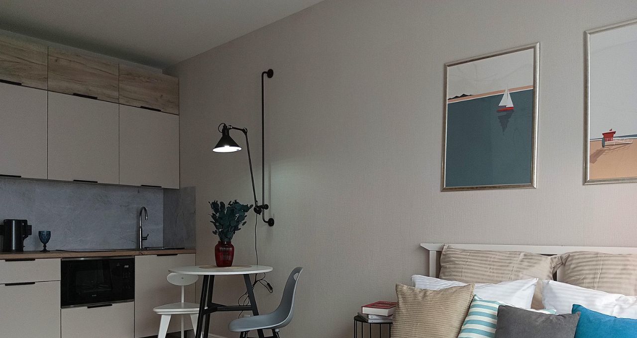 Сдается уютная квартира-студия (23 м2) в новом ЖК Морская Набережная на Васильевском острове.