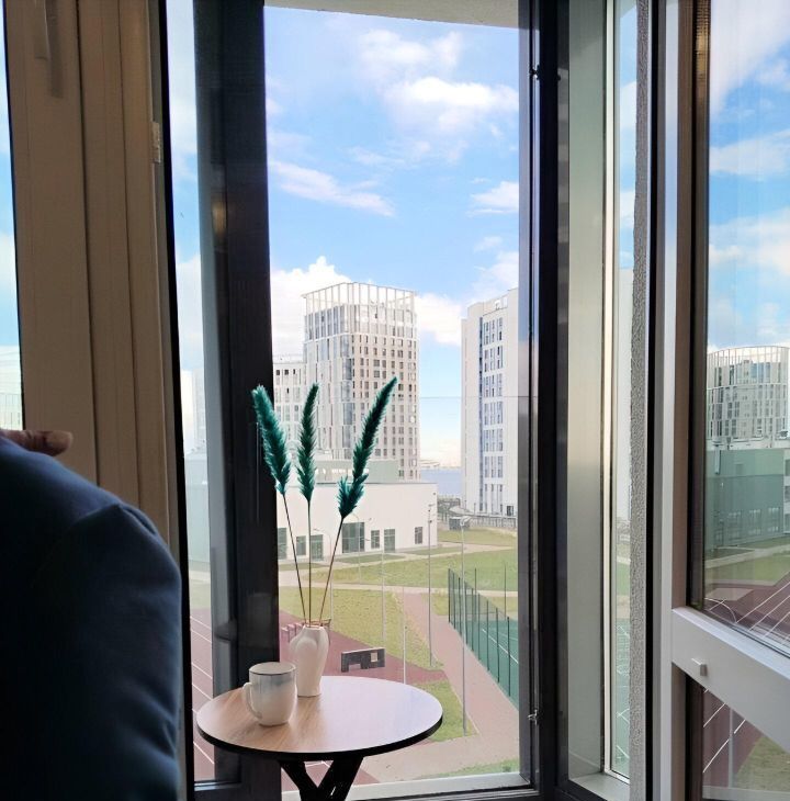 Сдается супер видовая квартира-студия площадью 26 кв. м на 4 этаже нового 15-этажного дома, построенного в 2024 году. Высота потолков составляет 2.75 метра, что визуально увеличивает пространство. Квартира расположена в современном жилом комплексе, в восьми минутах на автомобиле от станции метро Приморская.