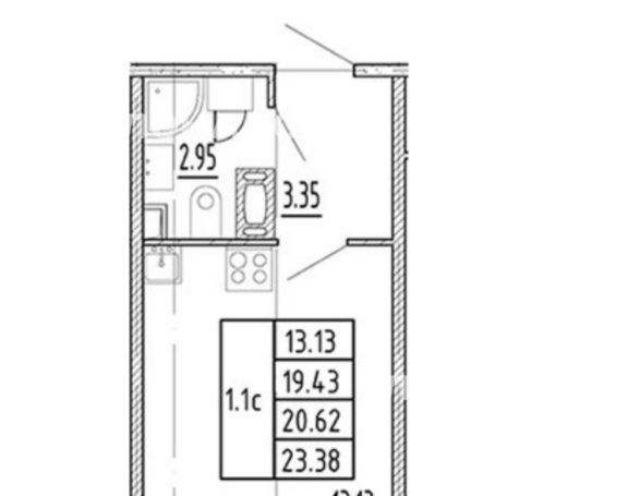 Студия Санкт-Петербург просп. Обуховской обороны, 138к2 (21.4 м²)