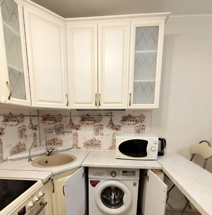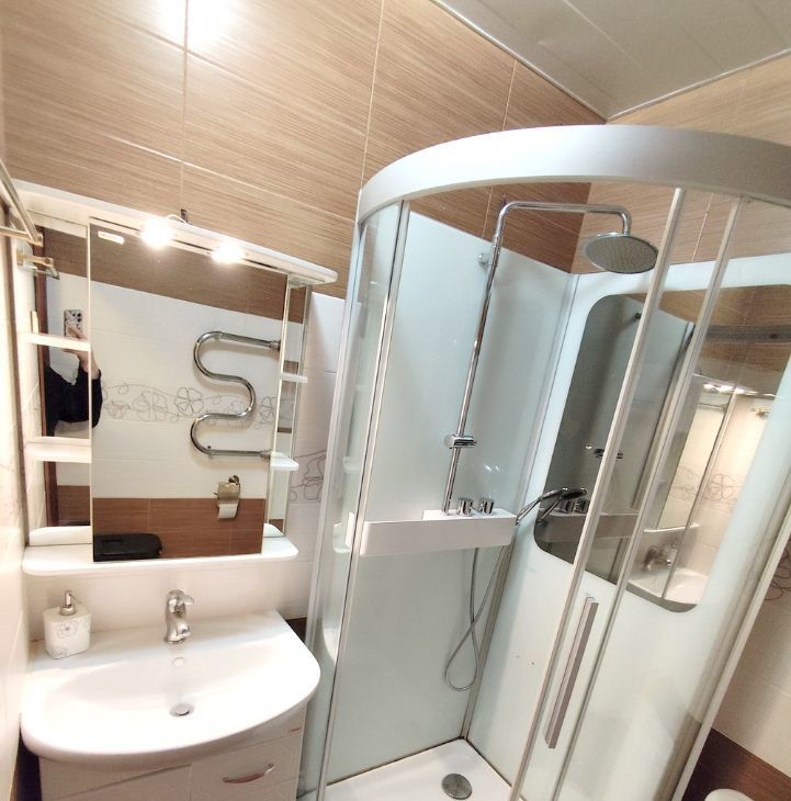 В квартире есть всё необходимое для комфортного проживания. На кухне есть эл.плита, холодильник, микроволновка, вытяжка, чайник, стиральная машина. Теплый пол во всей квартире, есть бойлер (на случай отключения гор.воды), гладильная доска, сушилка для белья.