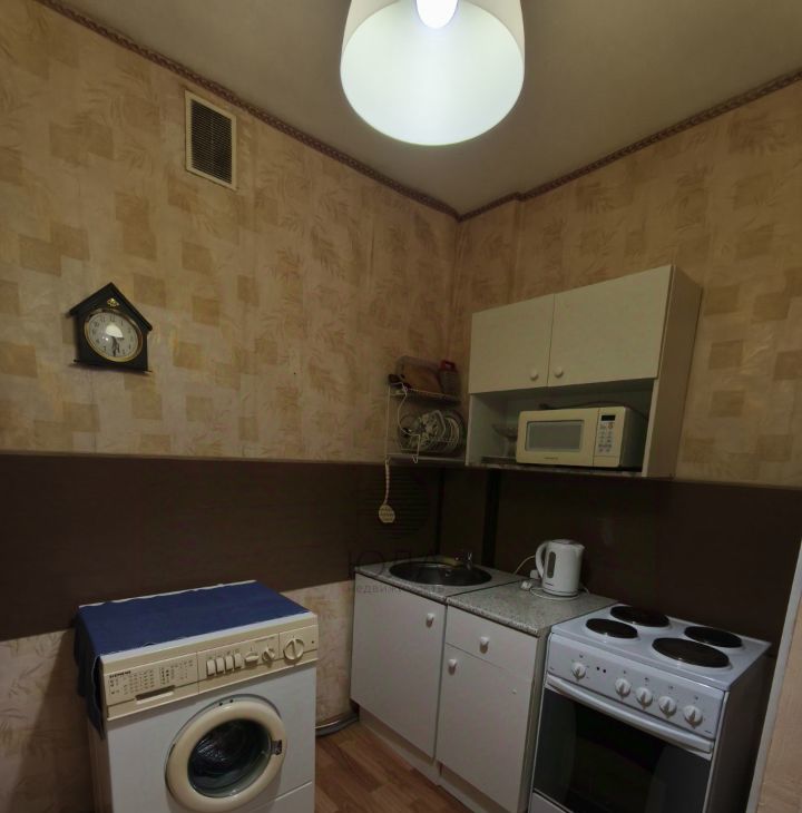 В квартире есть все для комфортного проживания, двуспальная кровать, большой шкаф и комод, стиральная машинка.