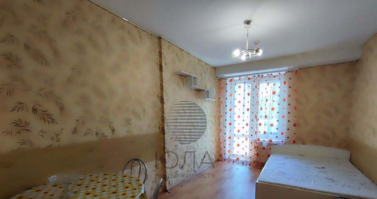 Комната, площадью 15 м² правильной формы с выходом балкон, кухня 5м², оборудована всем необходимым.