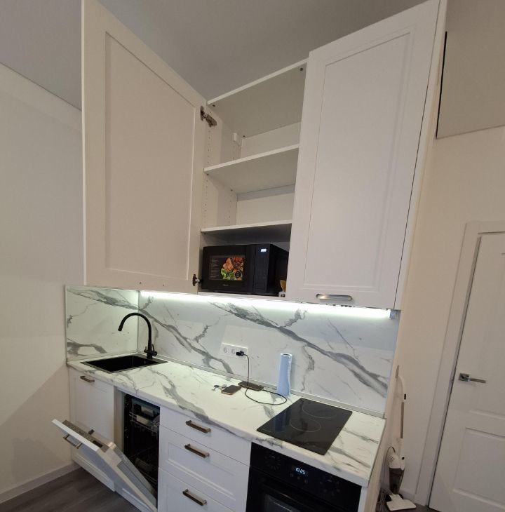 Квартира новая, никто не жил. Имеется вся необходимая мебель и техника: холодильник, посудомоечная машина, сенсорная варочная панель, вытяжка, микроволновая печь,