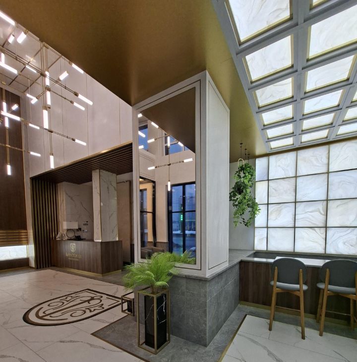 Территория дома закрытая , есть охрана и ресепшн с администратором . Так же есть паркинг подземный.