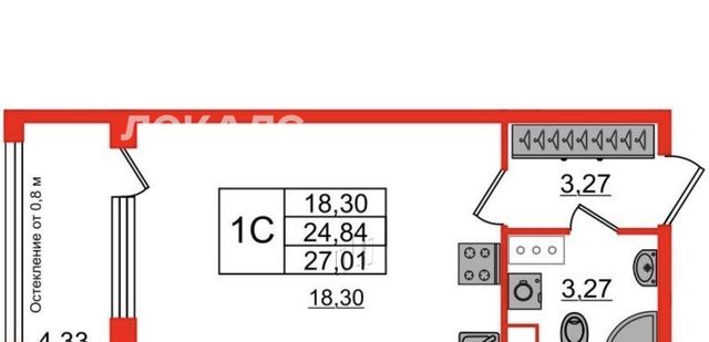 Квартира-студия: Санкт-Петербург, Старо-Петергофский проспект, 14 (33 м²)