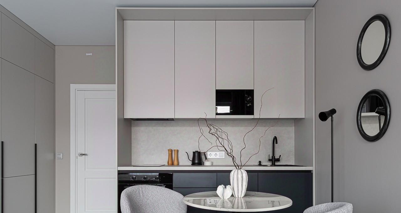 - Кухонный гарнитур спроектирован с хорошим функционалом и большой рабочей зоной, оборудован посудомоечной машиной, встроенной микроволновкой, электро-плитой на 2 места, духовым шкафом, и встроенным холодильником
