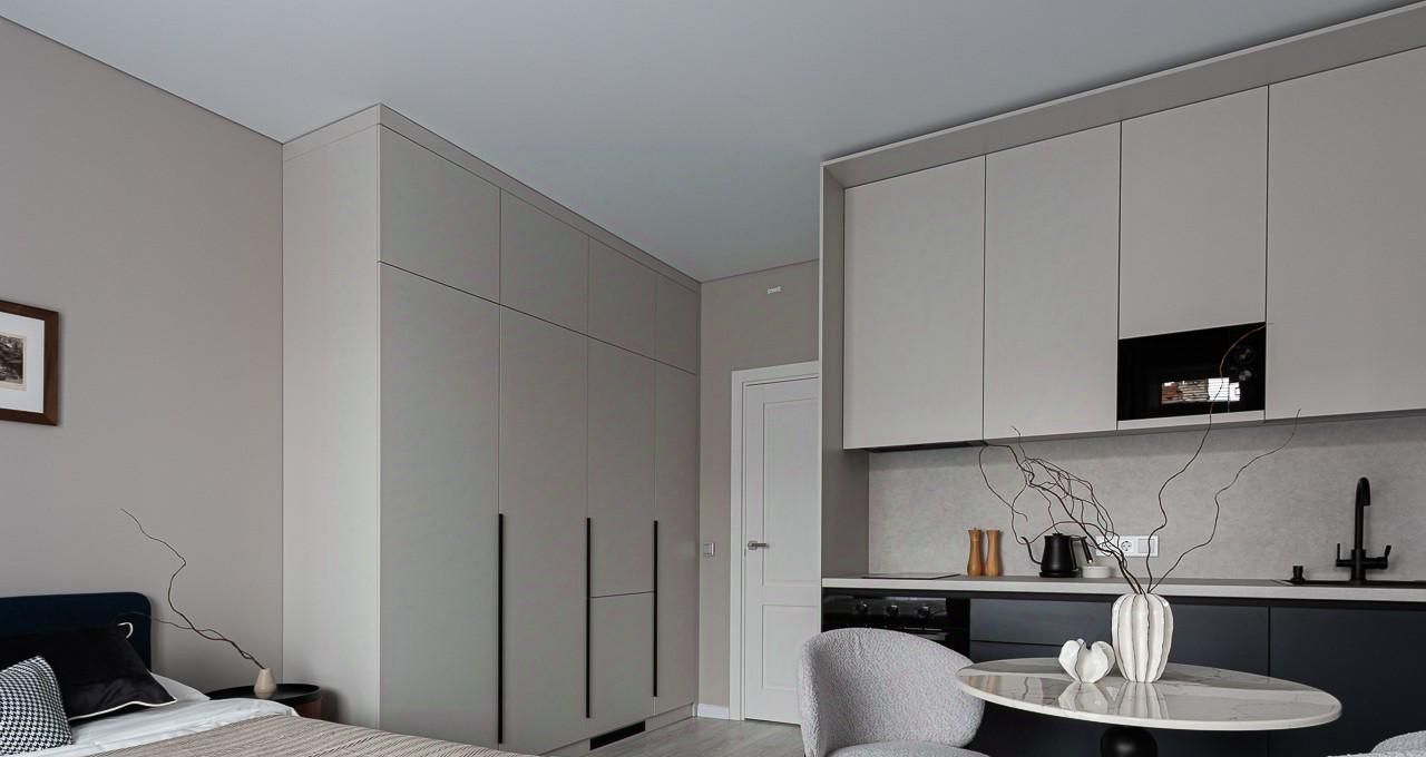 - Корпусная мебель производилась под заказ, а мебель и текстиль гармонично подобраны из актуальных моделей.
