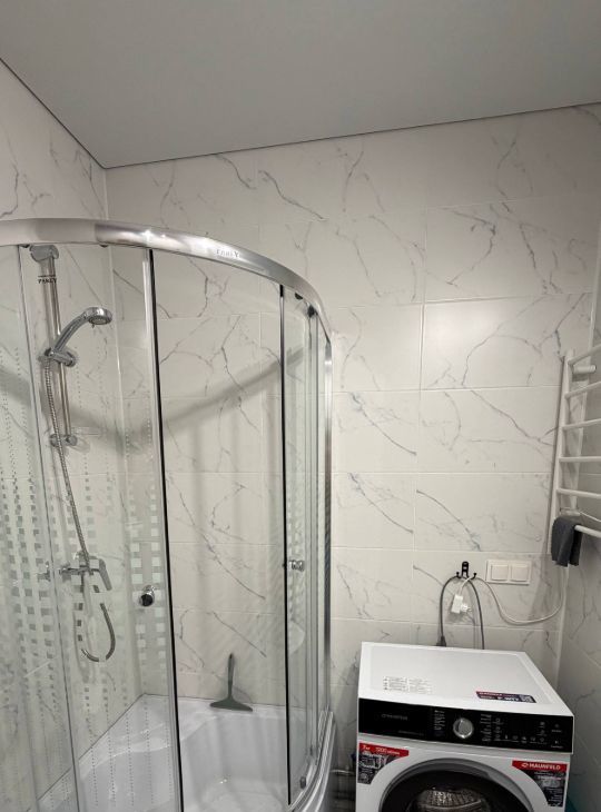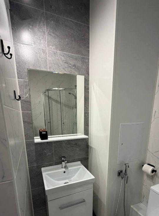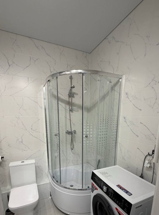Санузел: душевая кабина, гигиенический душ, новая сантехника.