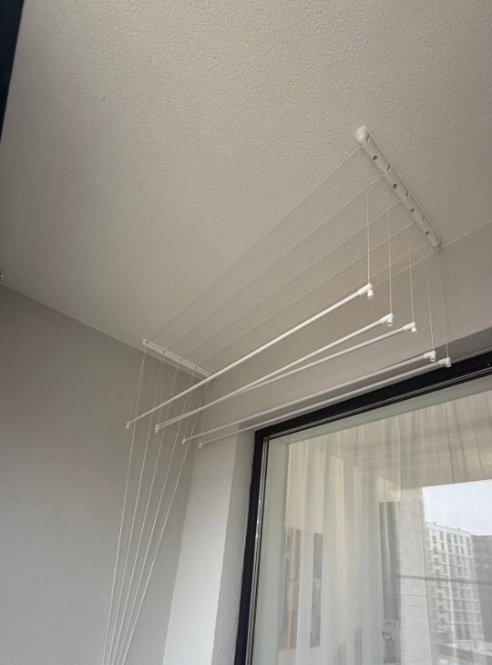 Техника: телевизор, стиральная машина, пылесос, утюг, гладильная доска, подвесная сушилка для белья.