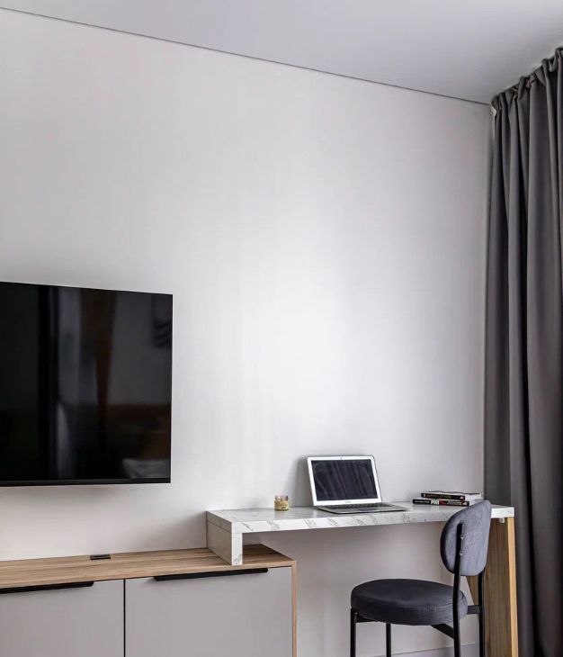Отдельная зона спальни продумана для отдыха и работы. Установлена кровать с ортопедическим матрасом для самых приятных снов. Есть рабочая зона.