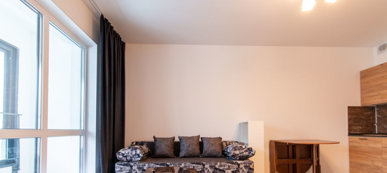 Чистая, уютная, просторная квартира-студия с большим балконом.