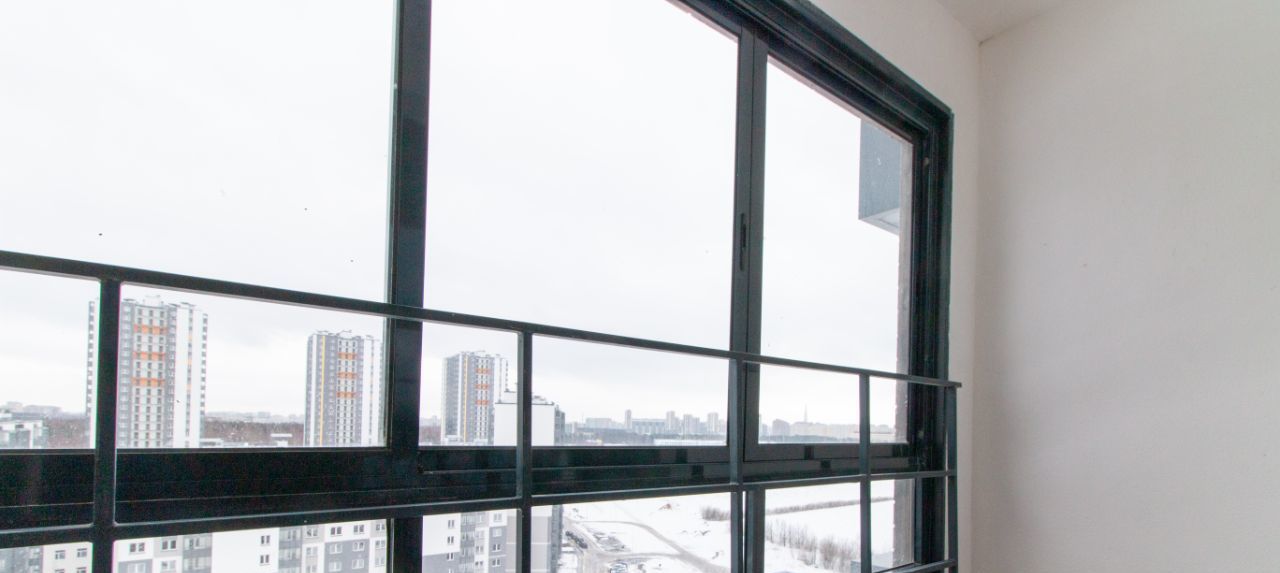 Большой застекленный балкон. Панорамные окна в комнате. Много солнца.