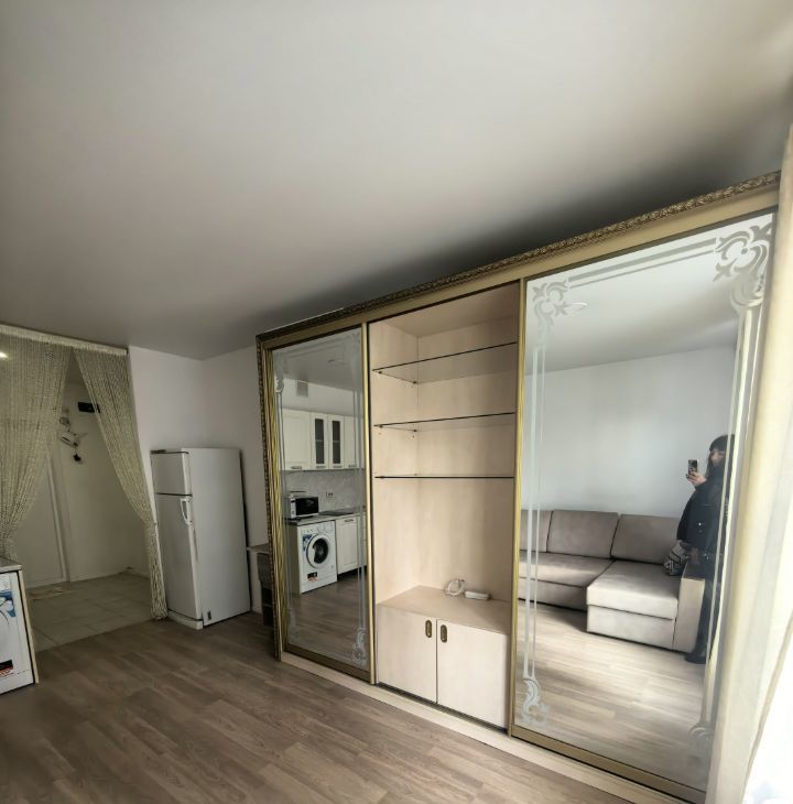 В квартире выполнен косметический ремонт. Пространство студии грамотно организовано: есть всё необходимое для комфортного проживания. На кухне и в комнате установлена мебель. Из техники в вашем распоряжении кондиционер, холодильник и стиральная машина. Санузел совмещённый, с ванной. Есть подключение к интернету, поэтому всегда будете на связи.