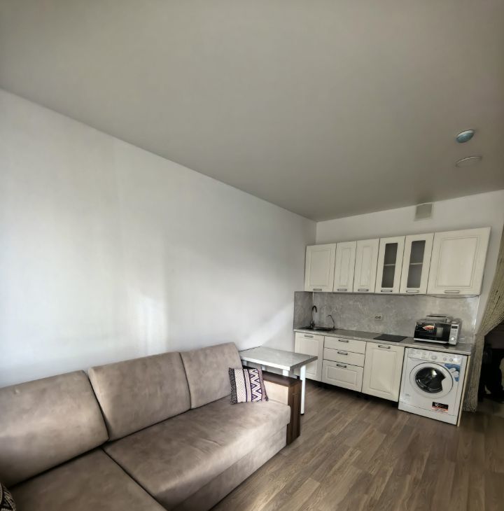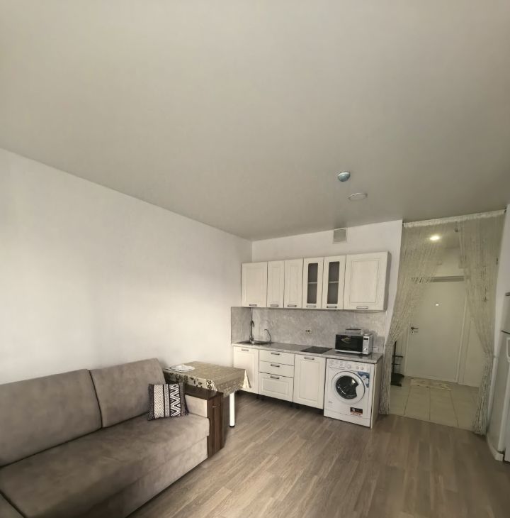 Сдаётся уютная студия в современном доме 2019 года постройки. Квартира расположена на 4-ом этаже 26-этажного панельного здания. Общая площадь составляет 24 кв. м, жилая площадь — 15 кв. м, кухня — 5 кв. м. Высота потолков — 2,6 метра. Окна выходят во двор, что обеспечит вам тишину и спокойствие.