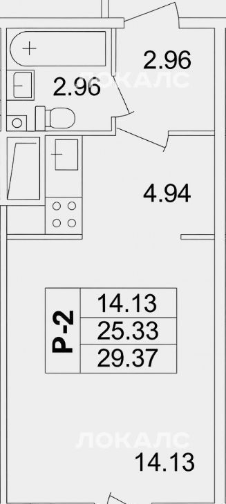 Площадь квартиры: 29,37 м².