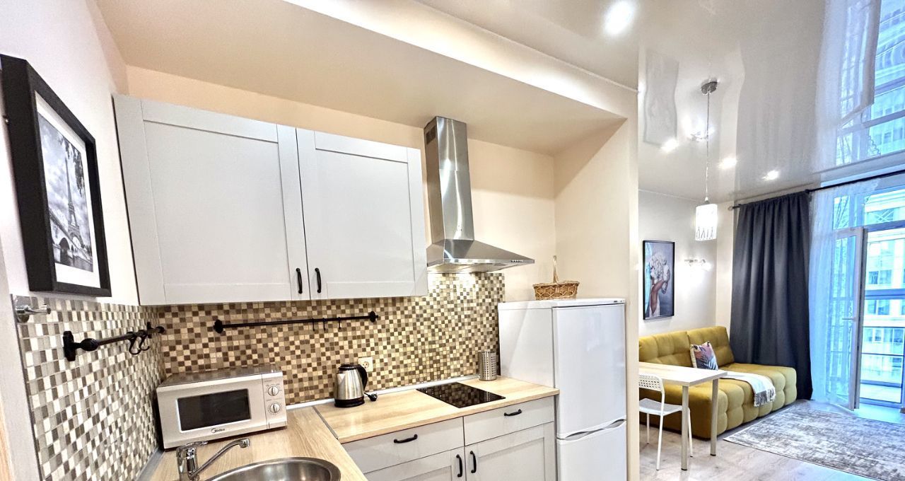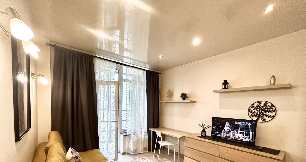 БЕЗ КОМИССИИ Прямая аренда от СОБСТВЕННИКА дизайнерской видовой студии с евроремонтом, панорамным остеклением и прекрасным видом на город c высокого этажа, площадью 30 кв.м., в кирпично-монолитном новом ЖК Бизнес класса Лондон Парк. Комфортная, красивая и светлая студия полностью оборудована современной техникой (холодильник, ЖК телевизор нового поколения, микроволновая печь, стиральная машина, пылесос, электрочайник и др.) и мебелью в скандинавском стиле, ремонт выполнен под хозяина. Оригинальная планировка. Кабельное телевидение более 100 каналов, WIFI, домофон. Просторная ванная комната с большой душевой кабиной (100*100) и унитазом с инсталляцией Geberit. Натяжные потолки и зональное освещение по всей квартире. Лоджия с панорамным остеклением и видом на город.